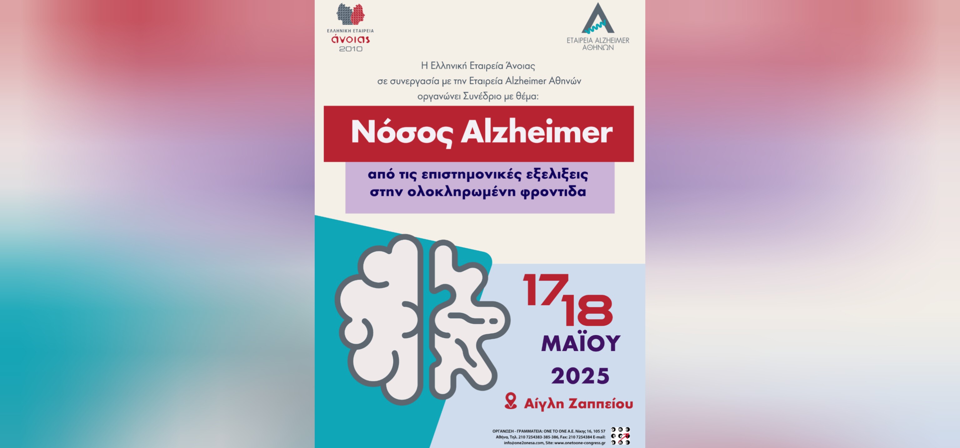 Του Άρη Μπερζοβίτη 17 &18 Μαίου 2025, Αίγλη Ζαππείου H Ελληνική Εταιρεία Άνοιας και η Εταιρεία Alzheimer Αθηνών συνδιοργανώνουν δια ζώσης συνέδριο με θέμα: «Νόσος Αlzheimer από τις επιστημονικές εξελίξεις στην