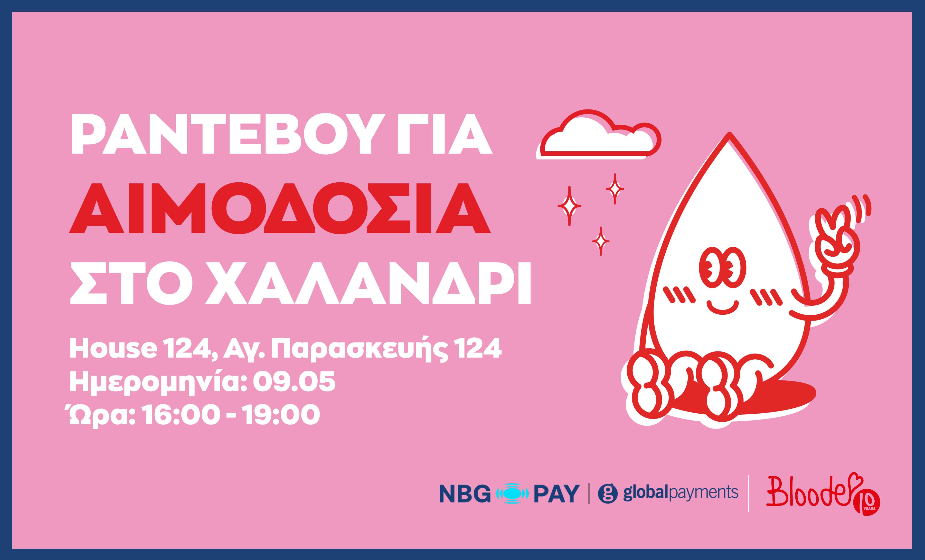 Με αφορμή την Παγκόσμια Ημέρα Θαλασσαιμίας (8 Μαΐου), και σε συνέχεια της επιτυχημένης εκδήλωσης της περασμένης χρονιάς, Bloode και NBG Pay ανανεώνουν και φέτος το