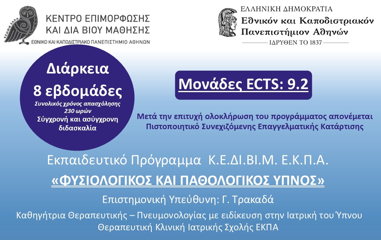 Το Κέντρο Επιμόρφωσης και Διά Βίου Μάθησης (Κ.Ε.ΔΙ.ΒΙ.Μ.) του Εθνικού και Καποδιστριακού Πανεπιστημίου Αθηνών ανακοινώνει την έναρξη των μαθημάτων του Εκπαιδευτικού Προγράμματος Συνεχιζόμενης Επαγγελματικής Κατάρτισης