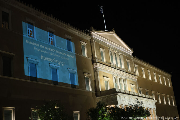 Mε το μήνυμα «Εξάλειψη του Καρκίνου Τραχήλου Μήτρας – Ενημερώσου, Εμβολιάσου, Εξετάσου!» φωταγωγήθηκε το βράδυ της Τρίτης η πρόσοψη της Βουλής των Ελλήνων. Η πρωτοβουλία