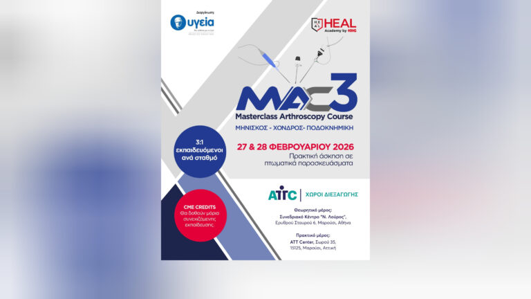 Με μεγάλη επιτυχία ολοκληρώθηκε το εκπαιδευτικό σεμινάριο «MAC 3: Masterclass Arthroscopy Course», το οποίο πραγματοποιήθηκε στις 27 και 28 Φεβρουαρίου 2026, με το θεωρητικό μέρος