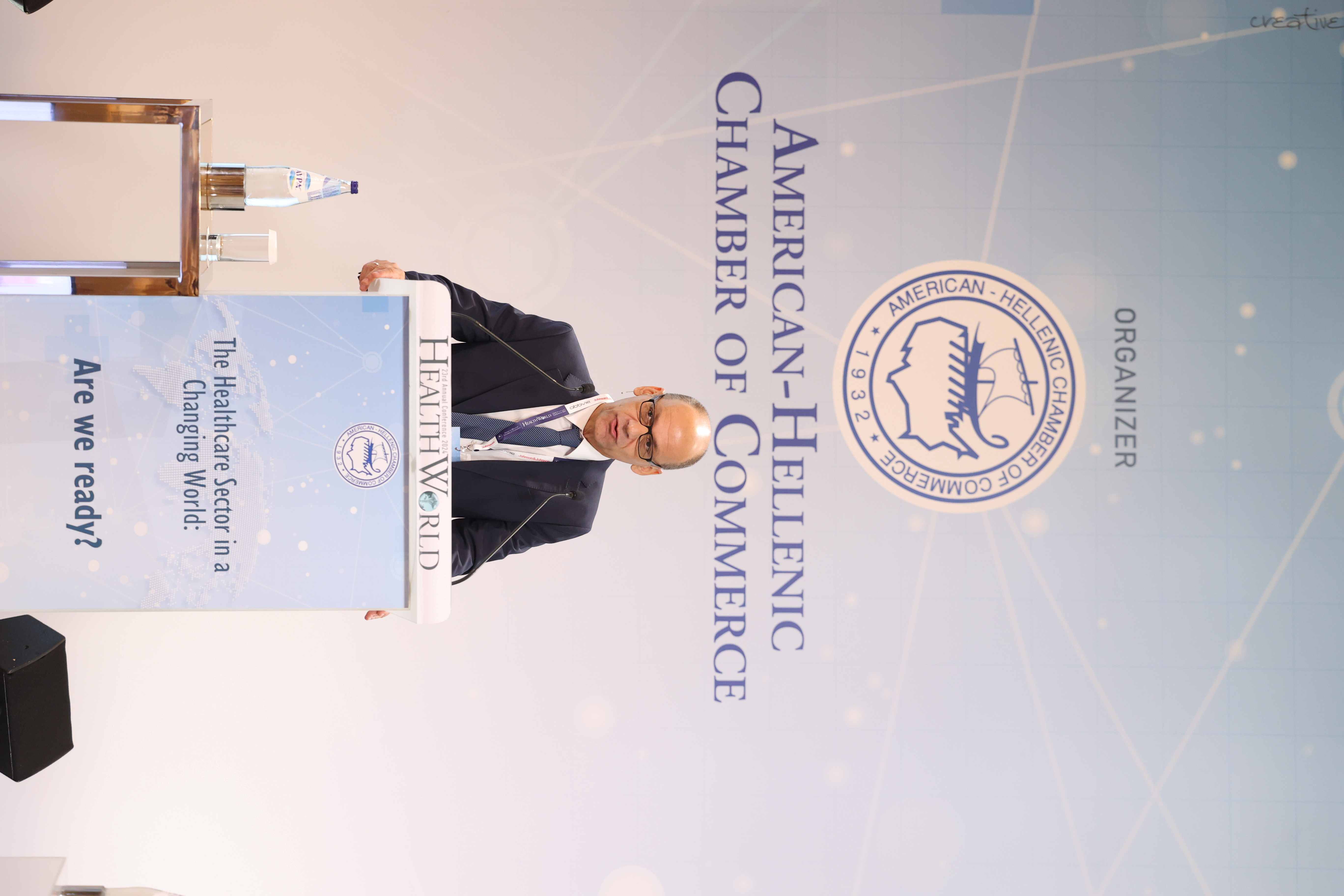 O Ηλίας Σπυρτούνιας, Γενικός Διευθυντής του Ελληνο-Αμερικανικού Εμπορικού Επιμελητηρίου, άνοιξε τις εργασίες του συνεδρίου με μία αναφορά στο δημογραφικό πρόβλημα, την κλιματική αλλαγή και τις τεχνολογικές εξελίξεις, παράγοντες οι οποίοι, όπως τόνισε, επιφέρουν τεράστιες αλλαγές στο σύστημα υγείας.
