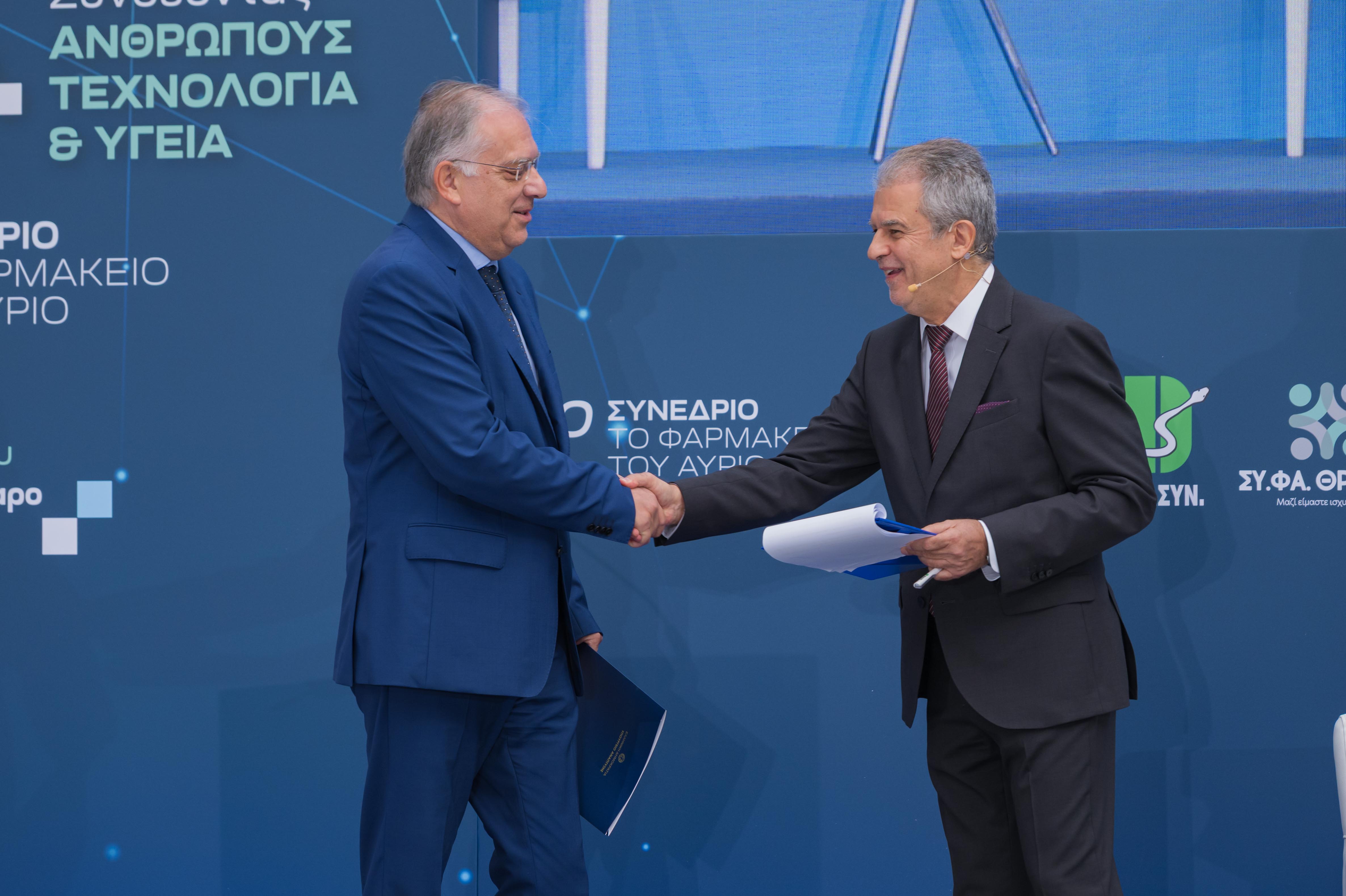 τη τεχνολογία. Την περαιτέρω αξιοποίηση των φαρμακείων ανακοίνωσε και ο Κυβερνητικός Εκπρόσωπος Παύλος Μαρινάκης, λέγοντας πως το να δώσουμε παραπάνω δυνατότητες στα φαρμακεία, με μέτρο αλλά με εμπιστοσύνη, θα ωφελήσει και τα νοσοκομεία και το συνολικό σύστημα υγείας. «Ο φαρμακοποιός αποτελεί έναν από τους πιο σταθερούς πυλώνες του ΕΣΥ και σύμβολο κοινωνικής αλληλεγγύης και συνοχής, αλλά και σημείο αναφοράς και ασφάλειας για την κοινωνία», ανέφερε ο Υπουργός Ανάπτυξης, Τάκης Θεοδωρικάκος, ενώ στην ομιλία της η Αναπληρώτρια Υπουργός Υγείας Ειρήνη Αγαπηδάκη χαρακτήρισε τα φαρμακεία ως «ΚΕΠ της Υγείας» και τον βασικό παράγοντα της επιτυχίας ή της αποτυχίας των κυβερνητικών ρυθμίσεων που γίνονται. «Το φάρμακο δεν είναι απλώς ένα εμπόρευμα, δεν είναι απλώς ένα προϊόν. Είναι κοινωνικό αγαθό δια χειρός φαρμακοποιού και αυτό πρέπει να το διαφυλάξουμε», σημείωσε στον χαιρετισμό του ο Ηλίας Γουζούασης, Αντιπρόεδρος Β’ ΕΟΦ.