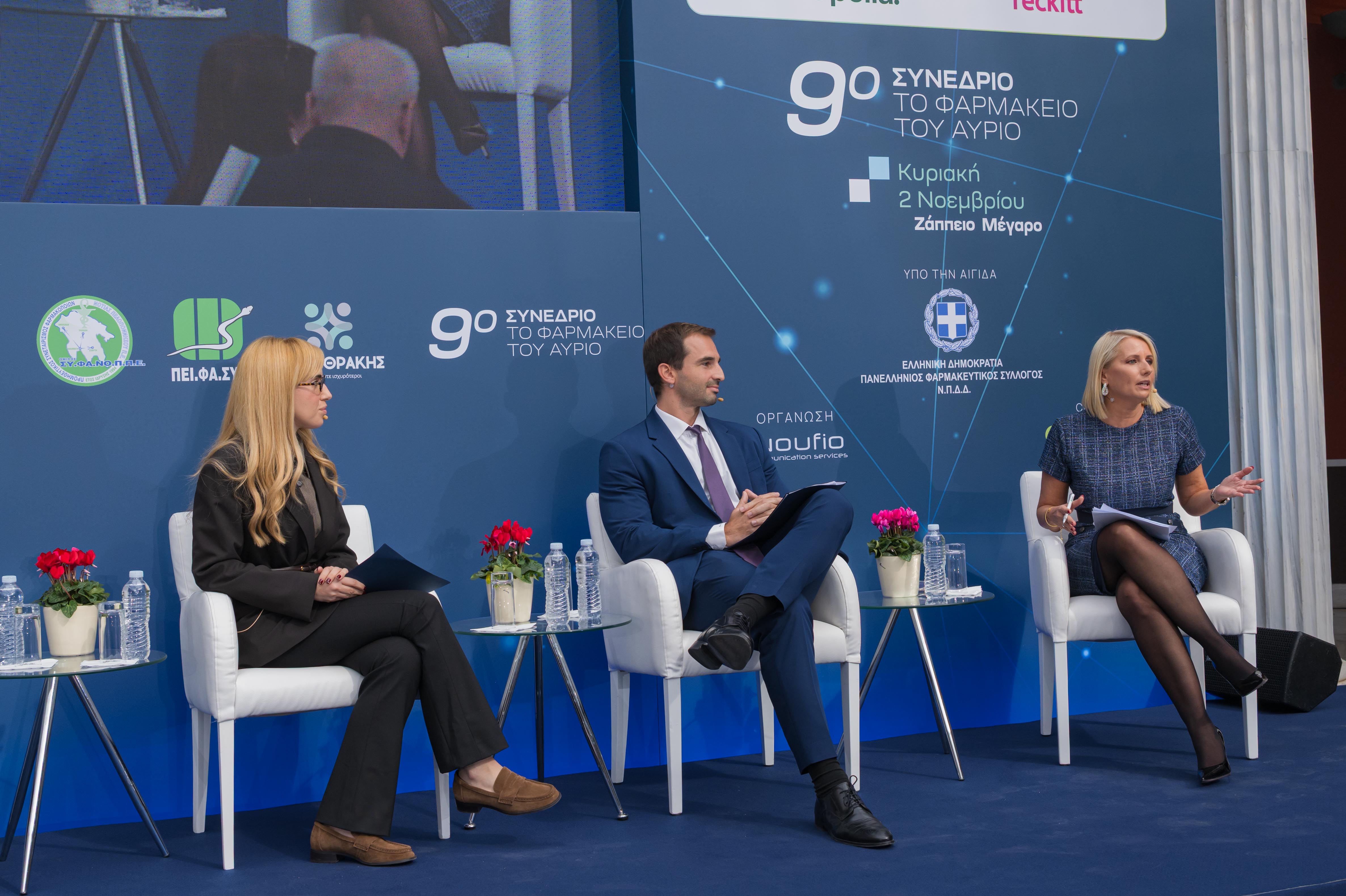 Με συντονίστρια τη δημοσιογράφο-παρουσιάστρια Κατερίνα Παπακωστοπούλου, ο Άρης Αγγελής, Γενικός Γραμματέας Στρατηγικού Σχεδιασμού και η Χριστίνα-Μαρία Κράββαρη, Γενική Γραμματέας Δημόσιας Υγείας, εστίασαν στις ελλείψεις φαρμάκων και πώς βελτιώθηκε η επάρ- κεια της αγοράς μέσω της καινοτόμας πλατφόρμας παρακολούθησης της διακίνησης φαρμάκων αλλά και πως εν μέσω των νέων τεχνολογιών (predictive analytics) θα μπορούμε να προνοήσουμε τυχόν μελλοντικές ελλείψεις σκευασμάτων. Οι δύο ομιλητές συμφώνησαν πως οι φαρμακοποι-