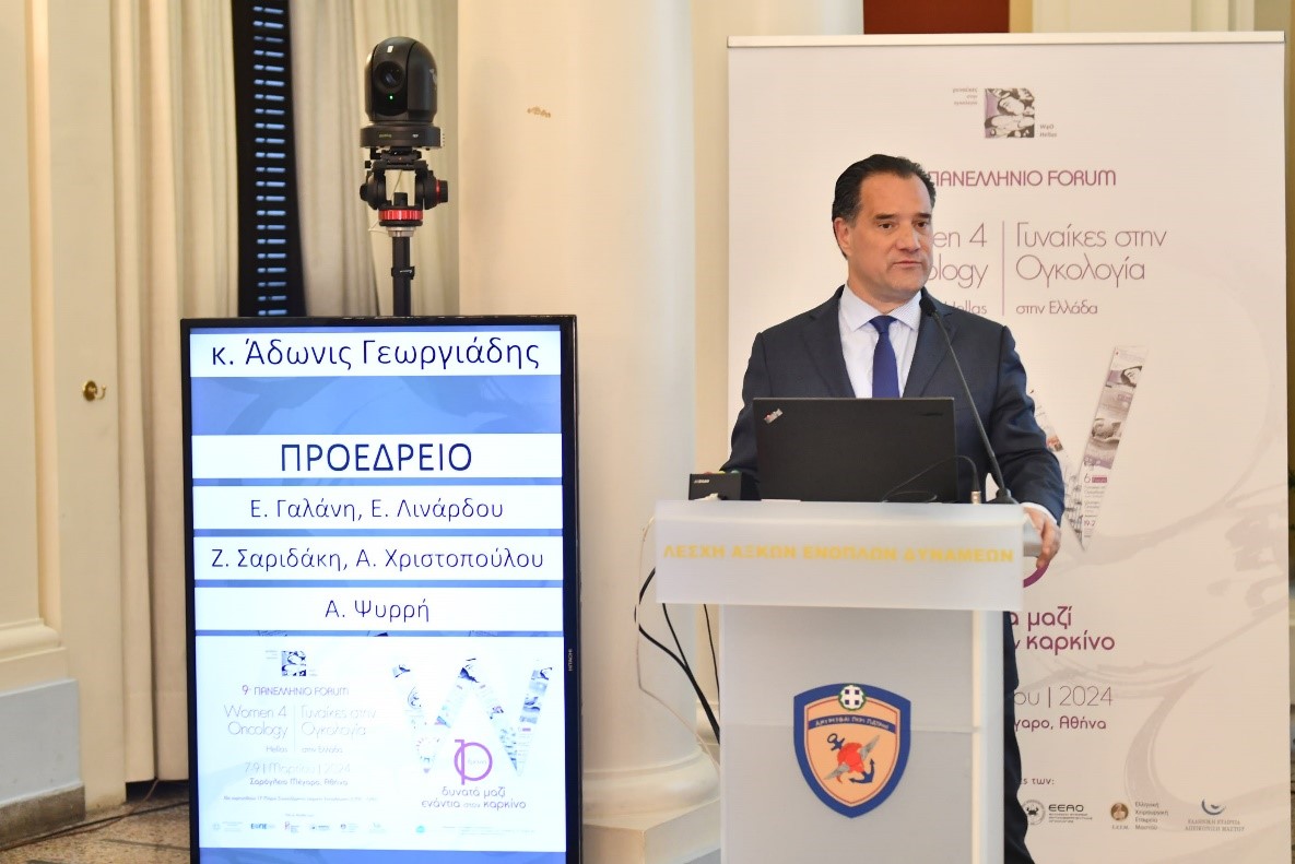 Ο κ. Υπουργός στο χαιρετισμό του μίλησε για τη σημασία της εξατομικευμένης θεραπείας στη σύγχρονη ογκολογία και την ανάγκη συνεργασίας θεσμών και γιατρών για την κοινή μάχη ενάντια στον καρκίνο. Στη συνέχεια εξήρε το έργο των Γυναικών στην Ογκολογία.