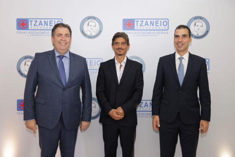 Κεντρική φωτογραφία από αριστερά προς δεξιά: Ο κ. Ηλίας Γουζούασης, Διοικητής Γ.Ν.Π. Τζάνειο, ο κ. Δημήτρης Γιαννακόπουλος, Πρόεδρος του Ιδρύματος «Παύλος Γιαννακόπουλος» και ο κ. Μάριος Θεμιστοκλέους,