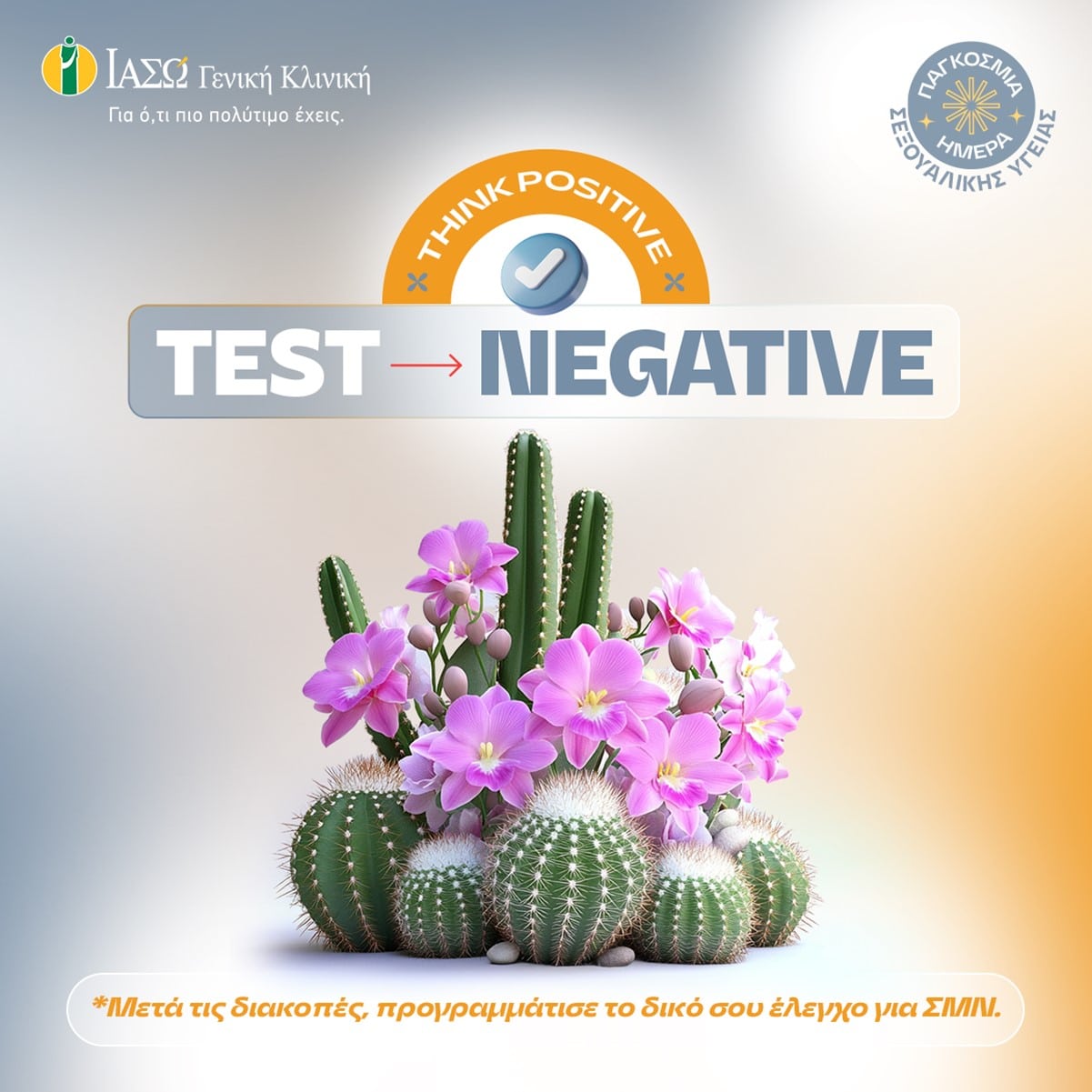 Το ΙΑΣΩ Γενική Κλινική, με αφορμή την Παγκόσμια Ημέρα Σεξουαλικής Υγείας (4 Σεπτεμβρίου), με το μήνυμα “Think positive. Test negative”, τονίζει την σπουδαιότητα της προστασίας