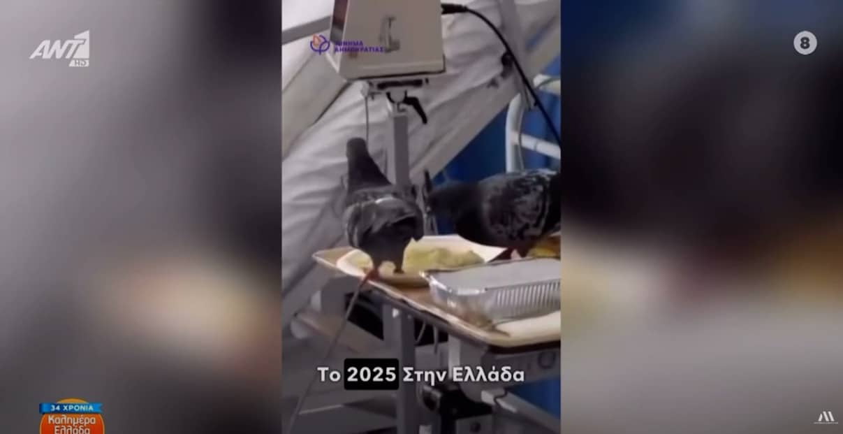 Περιστέρι τρώει φαγητό ασθενή μέσα στο νοσοκομείο Ερυθρός Σταυρός (βίντεο)