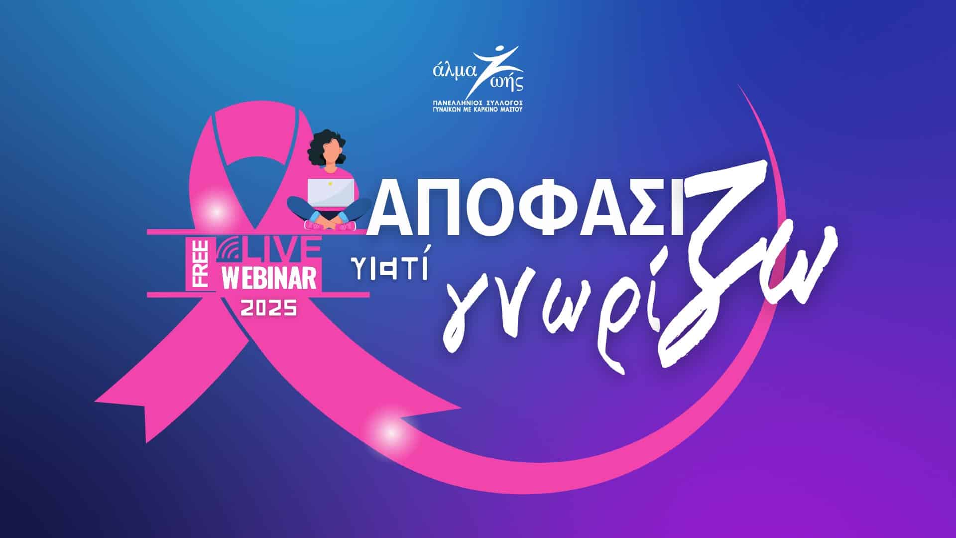 Απρίλιος – Δεκέμβριος 2025, επιλεγμένες Τετάρτες Τα δωρεάν εκπαιδευτικά webinars για τον καρκίνο του μαστού «Αποφασίζω γιατί Γνωρίζω» επιστρέφουν με νέο κύκλο 10 αυτοτελών σεμιναρίων.