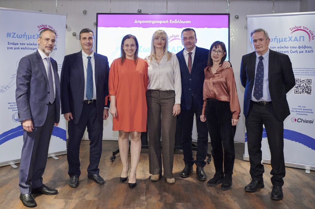 Κεντρική φωτογραφία από αριστερά προς τα δεξιά: Σταύρος Γ. Θεοδωράκης, Πρόεδρος & Διευθύνων Σύμβουλος, Chiesi Ελλάδας και Κύπρου, Στυλιανός Λουκίδης, Πρόεδρος της ΕΠΕ, Καθηγητής Πνευμονολογίας