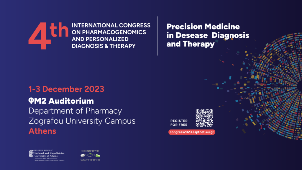 Η Ελληνική Εταιρεία Φαρμακογονιδιωματικής και Εξατομικευμένης Διάγνωσης και Θεραπείας (ΕΕΦΑΡΜ) και το Τμήμα Φαρμακευτικής της Σχολής Επιστημών Υγείας του Εθνικού και Καποδιστριακού Πανεπιστημίου Αθηνών (ΕΚΠΑ)