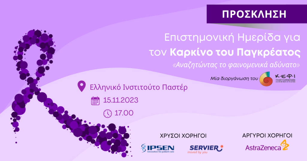 Ο Σύλλογος Καρκινοπαθών, Εθελοντών, Φίλων, Ιατρών «Κ.Ε.Φ.Ι.» Αθηνών διοργανώνει Επιστημονική Ημερίδα με θέμα «ΠΑΓΚΟΣΜΙΑ ΗΜΕΡΑ ΓΙΑ ΤΟΝ ΚΑΡΚΙΝΟ ΤΟΥ ΠΑΓΚΡΕΑΤΟΣ – Αναζητώντας το φαινομενικά αδύνατο»,