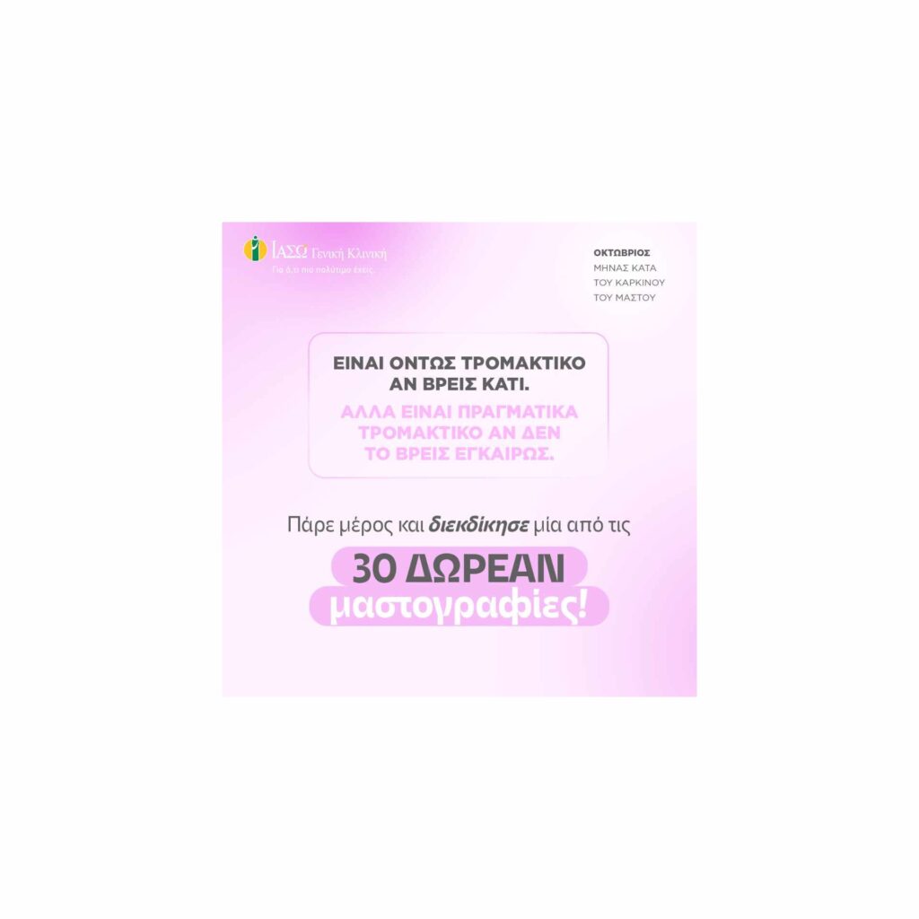 H Γενική Κλινική του ΙΑΣΩ με αφορμή τον μήνα ενημέρωσης και ευαισθητοποίησης για τον Καρκίνο του Μαστού και μήνυμα «Είναι όντως τρομακτικό αν βρεις κάτι.