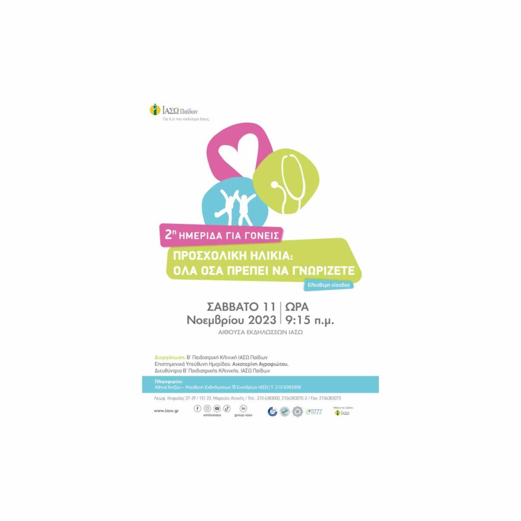 Η 2η Ημερίδα για Γονείς του ΙΑΣΩ Παίδων, με θέμα «Προσχολική Ηλικία: Όλα όσα πρέπει να γνωρίζετε», θα πραγματοποιηθεί το Σάββατο 11 Νοεμβρίου 2023, στις