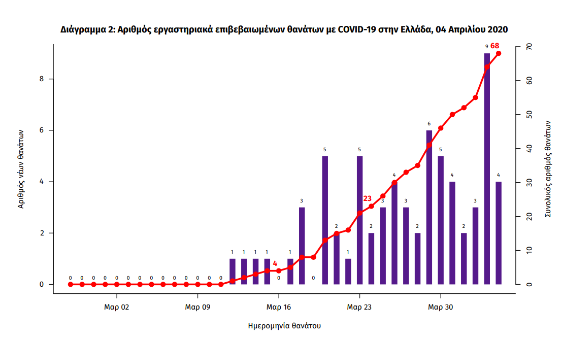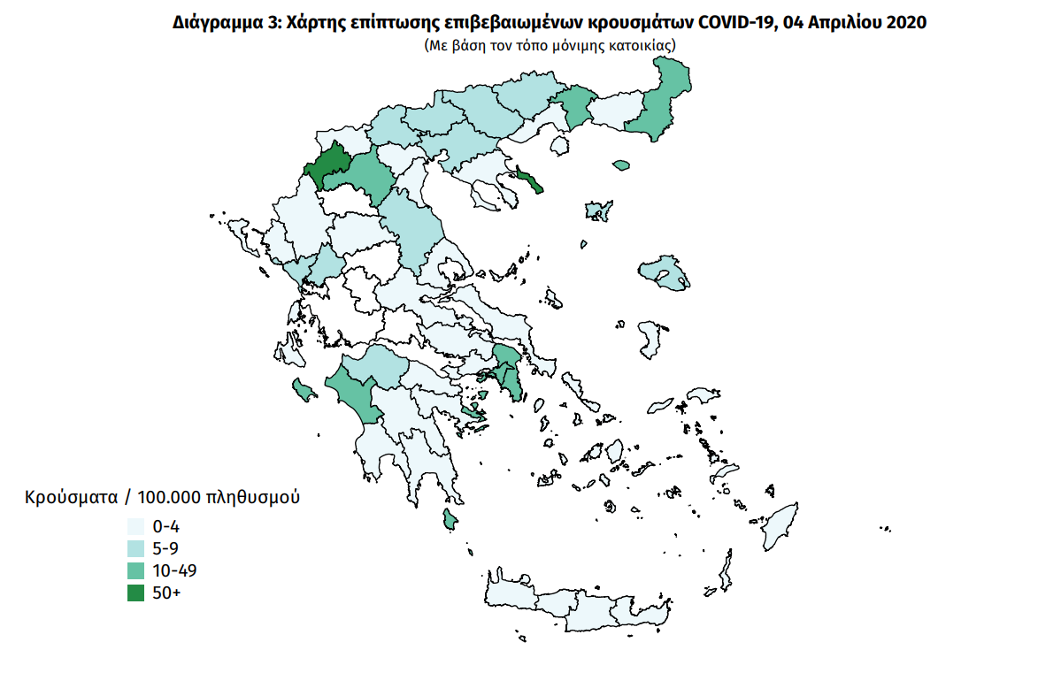 Ο ΕΟΔΥ παρουσίασε τα στοιχεία  που αφορούν περιστατικά από την επιδημιολογική επιτήρηση της νόσου από το νέο κορωνοϊό (COVID19), με βάση τα δεδομένα που έχουν δηλωθεί  και καταγραφεί σε αυτόν μέχρι τις 04 Απριλίου 2020 (ώρα 15:00).