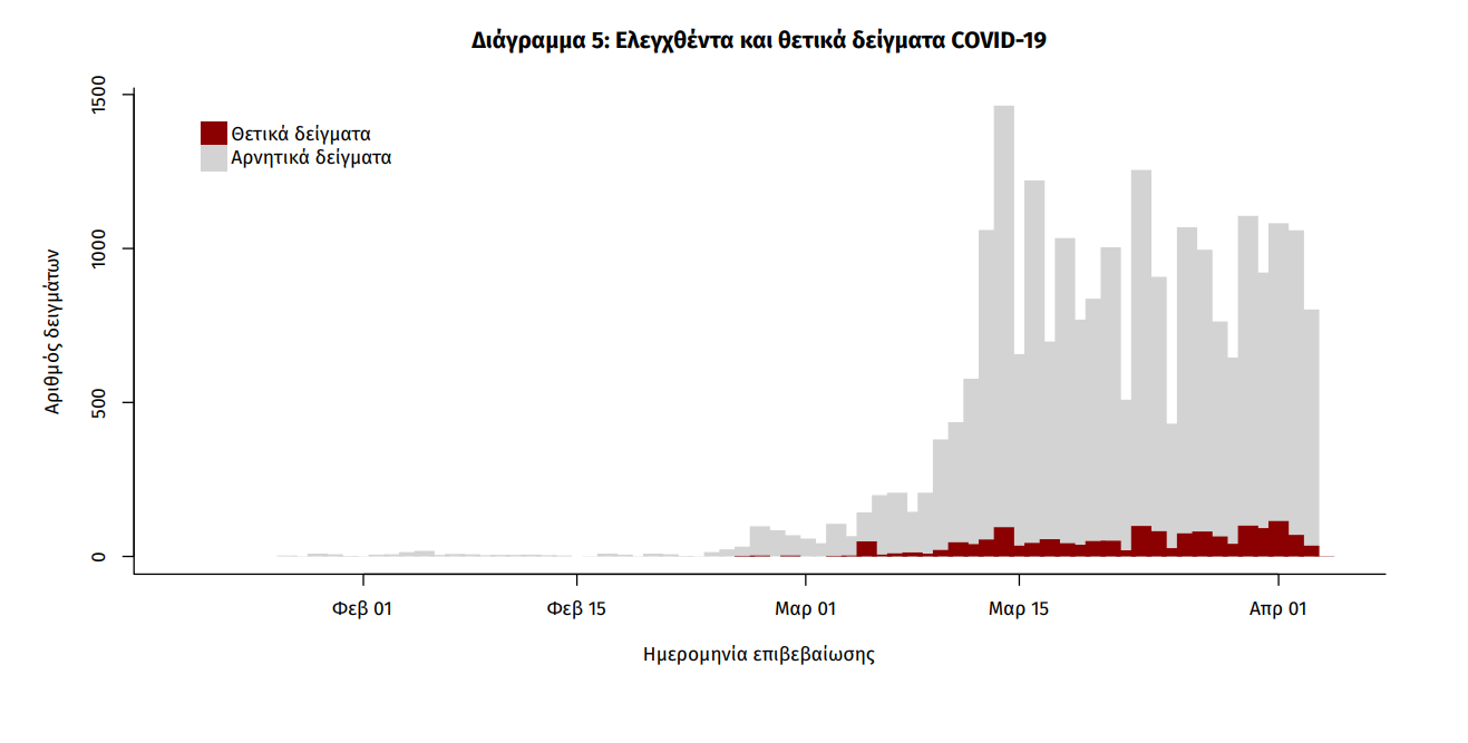 των δειγμάτων που ελέγχουν (θετικά και αρνητικά), έχουν συνολικά ελεγχθεί 23333 κλινικά δείγματα, εκ των οποίων τα 1577 (6.8%) ήταν θετικά στον κορωνοϊό.
