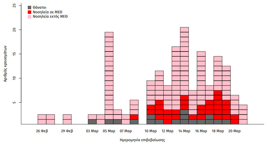 Νοσηλευθέντα κρούσματα COVID-19 στην Ελλάδα, 23 Μαρτίου 2020
