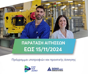 Η DEMO, ηγέτιδα εταιρεία στον κλάδο της φαρμακοβιομηχανίας, ανακοινώνει την παράταση της περιόδου υποβολής αιτήσεων για τον 7ο κύκλο του Start Your Journey, του Προγράμματος Υποτροφιών και Πρακτικής Άσκησης της εταιρείας, μέχρι τις 15 Νοεμβρίου 2024.