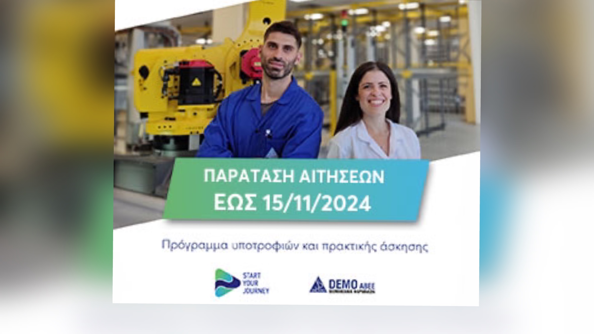 Η DEMO, ηγέτιδα εταιρεία στον κλάδο της φαρμακοβιομηχανίας, ανακοινώνει την παράταση της περιόδου υποβολής αιτήσεων για τον 7ο κύκλο του Start Your Journey, του Προγράμματος Υποτροφιών και Πρακτικής Άσκησης της εταιρείας, μέχρι τις 15 Νοεμβρίου 2024.