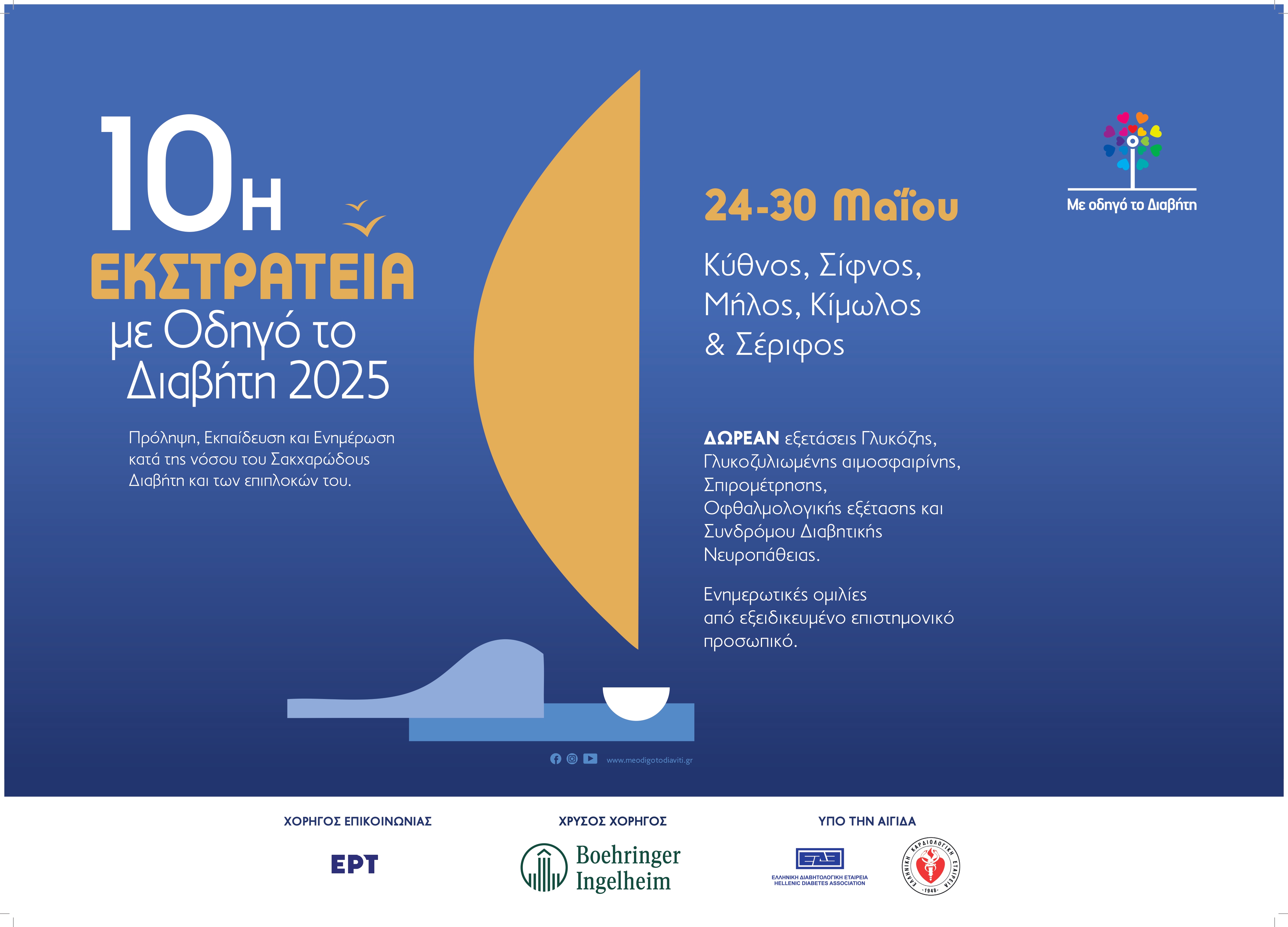 H Boehringer Ingelheim Ελλάς ανακοινώνει επίσημα τη συμμετοχή της με χρυσή χορηγία στη 10η εκστρατεία ενημέρωσης και εκπαίδευσης « Με οδηγό το διαβήτη» σε ακόμα πέντε νησιά των Κυκλάδων (Κύθνο, Σίφνο, Κίμωλο, Μήλο και Σέριφο).