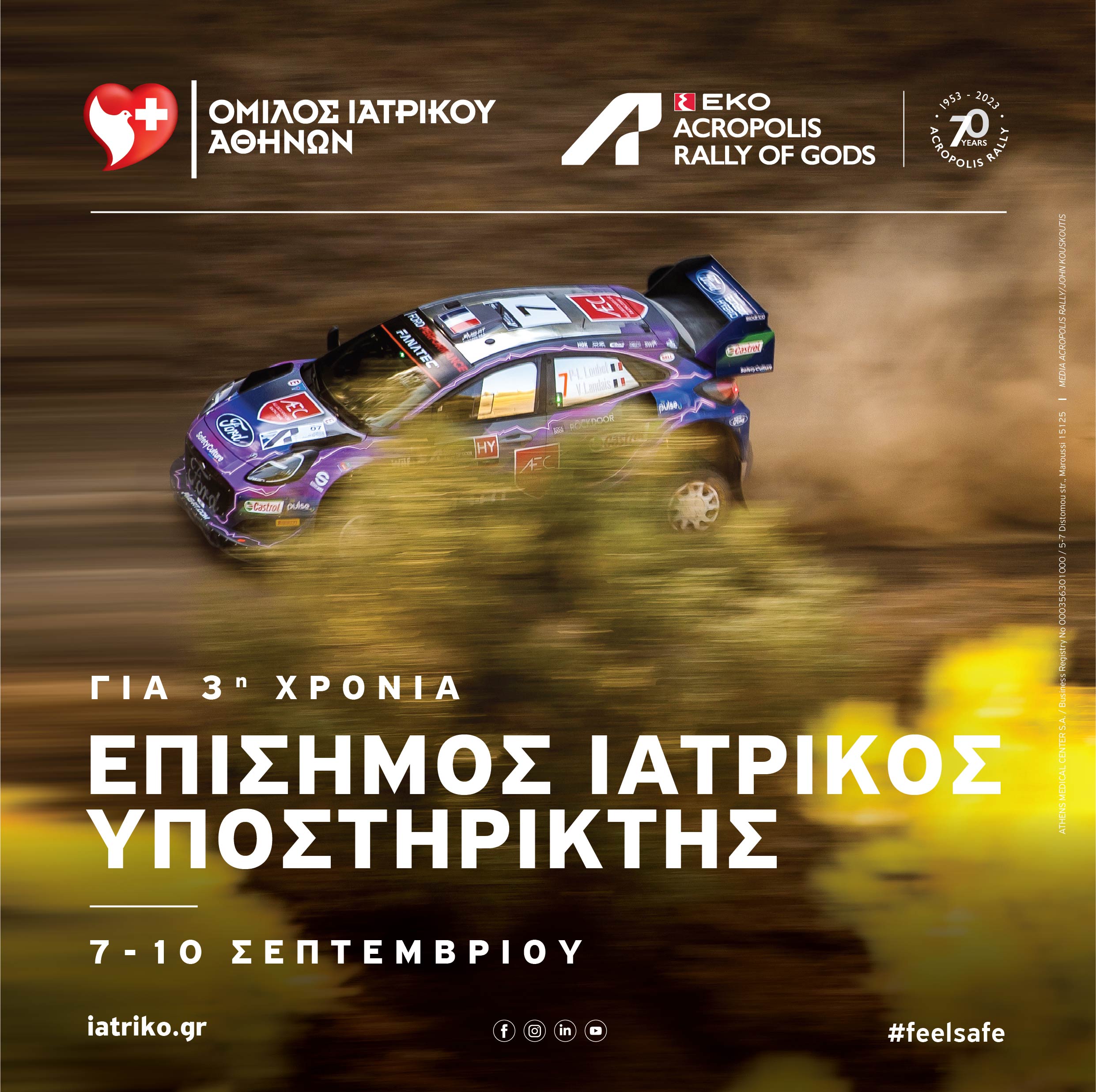 Ο Όμιλος Ιατρικού Αθηνών αποτελεί και για τη φετινή χρονιά τον «Επίσημο Ιατρικό Υποστηρικτή» (Official Medical Partner) του ΕΚΟ Ράλλυ Ακρόπολις 2023, μέρος του Παγκόσμιου Πρωταθλήματος Ράλλυ (WRC).