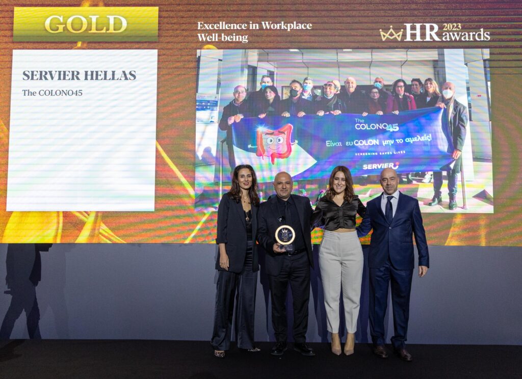 Τιμητική διάκριση για τη δέσμευσή της να προασπίζει την υγεία και την ευημερία των ανθρώπων της, εντός και εκτός του εργασιακού τους περιβάλλοντος, απέσπασε η Servier Hellas στα HR Awards 2023, λαμβάνοντας χρυσό βραβείο στην κατηγορία «Excellence in Workplace Well-being» για την πρωτοβουλία «The COLONO45».