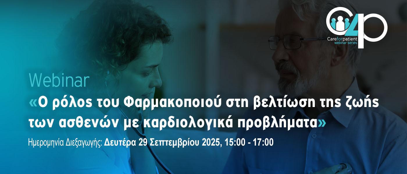 Ενημέρωση και Εκπαίδευση στους φαρμακοποιούς και στην ομάδα του φαρμακείου, για την καλύτερη κατανόηση και διαχείριση του ασθενή με καρδιολογικά προβλήματα, πρόσφέρει τι webinar της Ελληνικής Φαρμακευτικής Εταιρίας της Δευτέρα 29 Σεπτεμβρίου  .